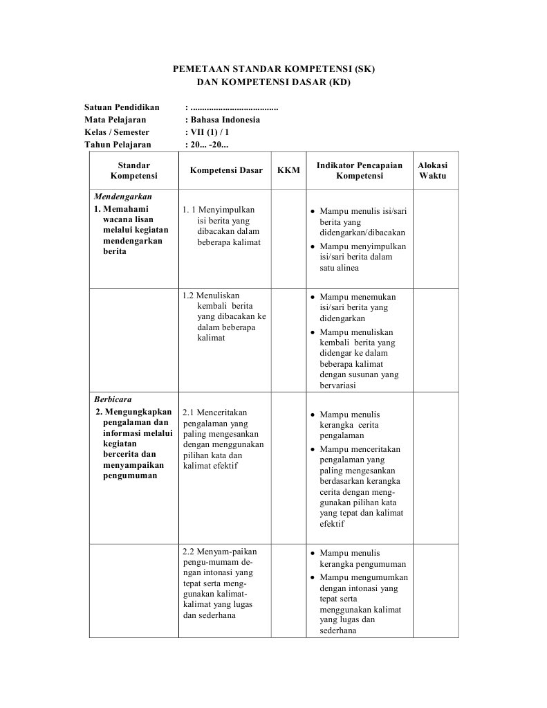 Pemetaan sk kd bahasa indonesia smp kelas 7 kurikulum 2013. Check spelling or type a new query. We did not find results for: Maybe you would like to learn more about one of these?