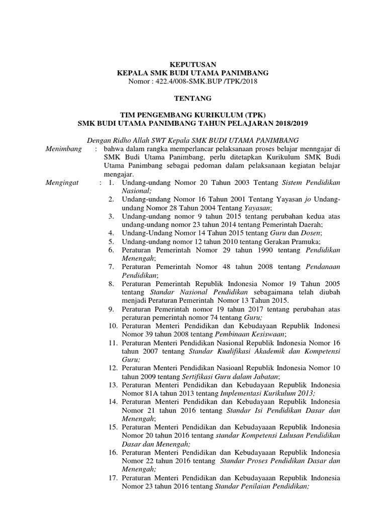 Contoh Sk Tim Pengembang Kurikulum Smk Masnurul from imgv2-1-f.scribdassets.com We did not find results for: Check spelling or type a new query. Sk tim pengembang kurikulum paud. Maybe you would like to learn more about one of these?