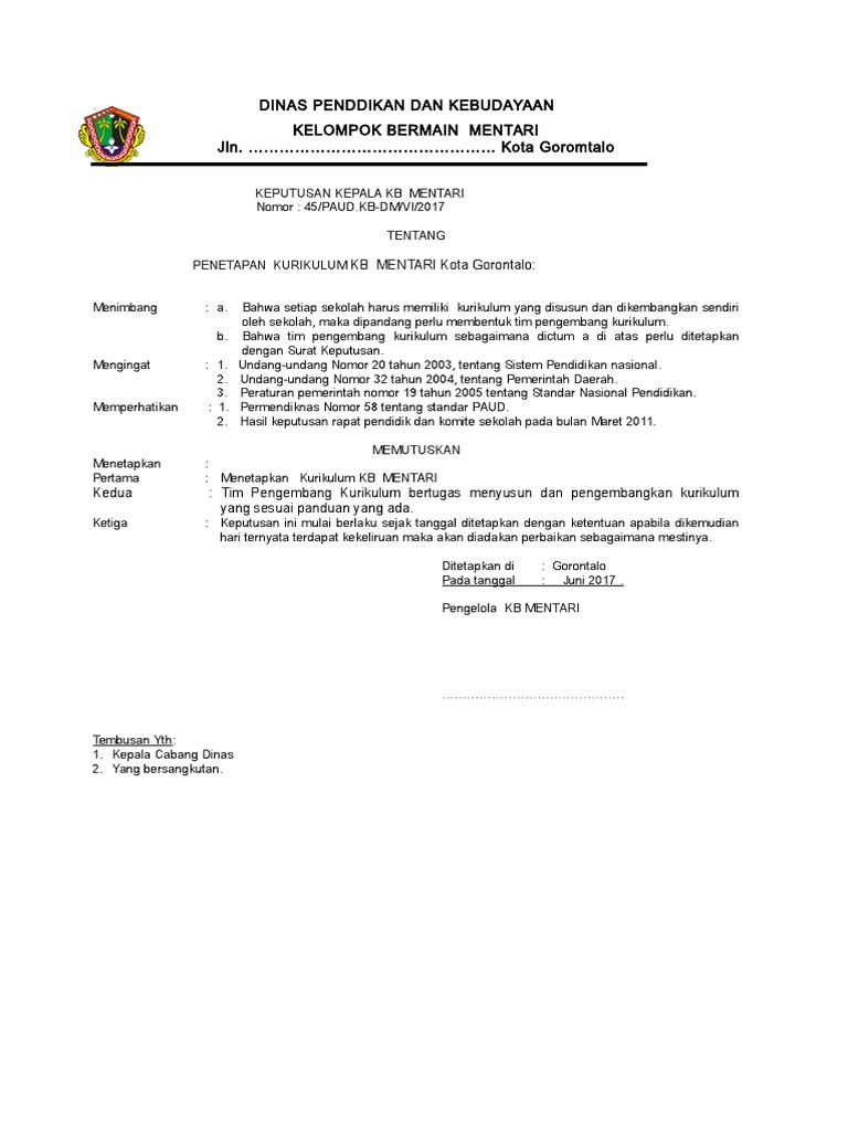 Sk tim pengembang kurikulum paud. Maybe you would like to learn more about one of these? We did not find results for: Check spelling or type a new query.